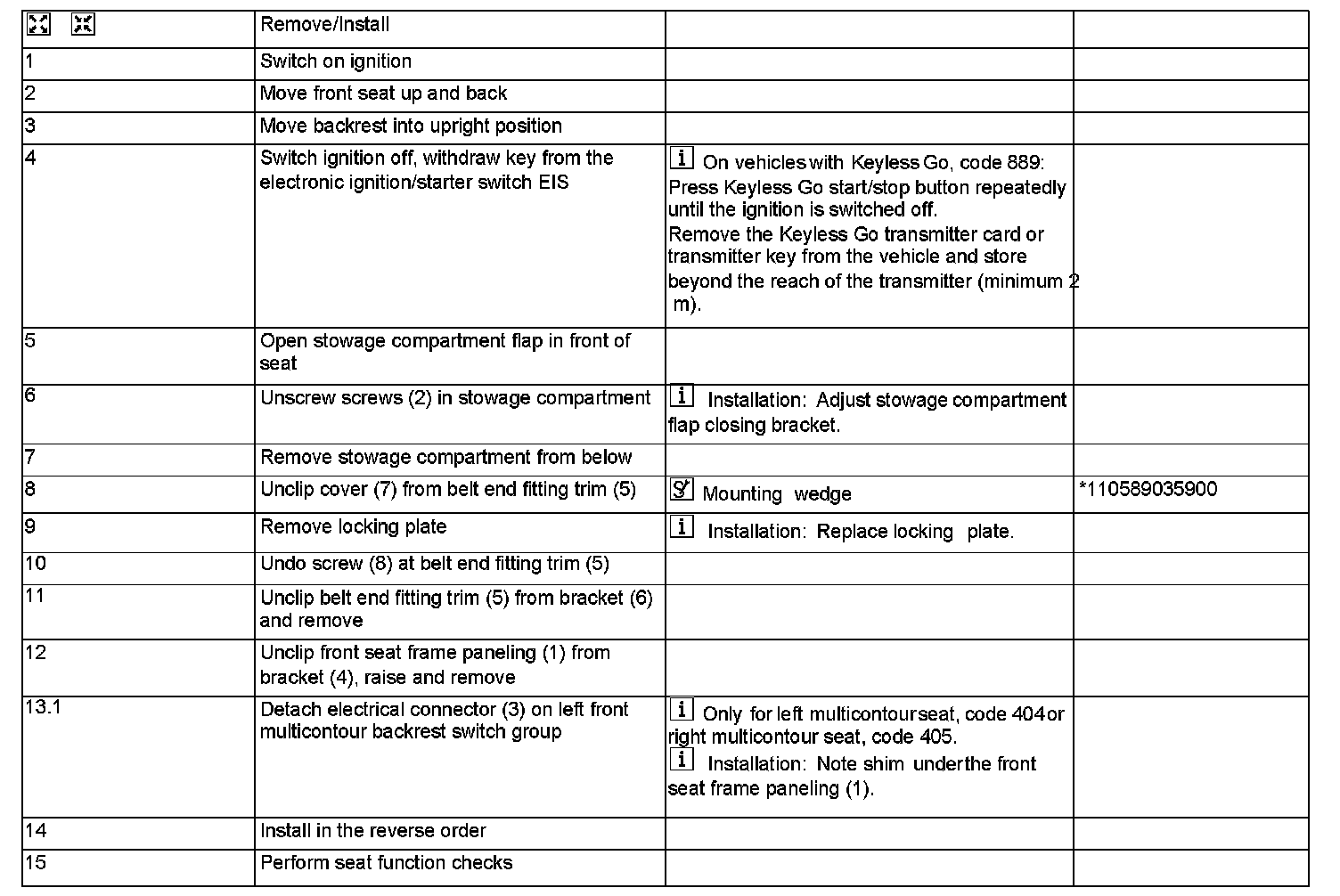 AR91.10-P-1200R Remove/Install Front Seat