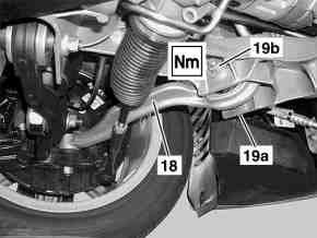 3 Remove series bolt (19a) with nut (19b) on torque strut (18).