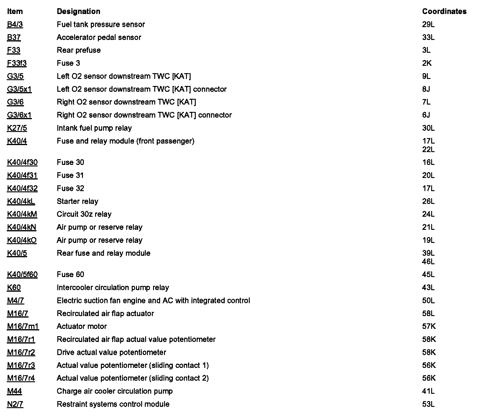 Component Locations: Component Location photographs can be found via their component names at the vehicle level. Component Locations