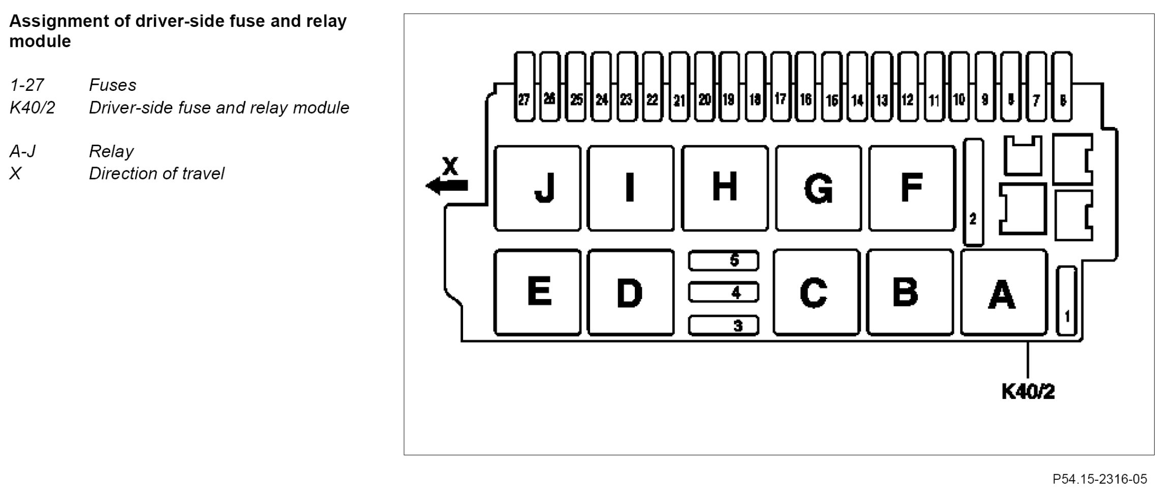 GF54.15-P-1257-03R Relay Assignment Of Fuse And Relay Box In Left Engine Compartment