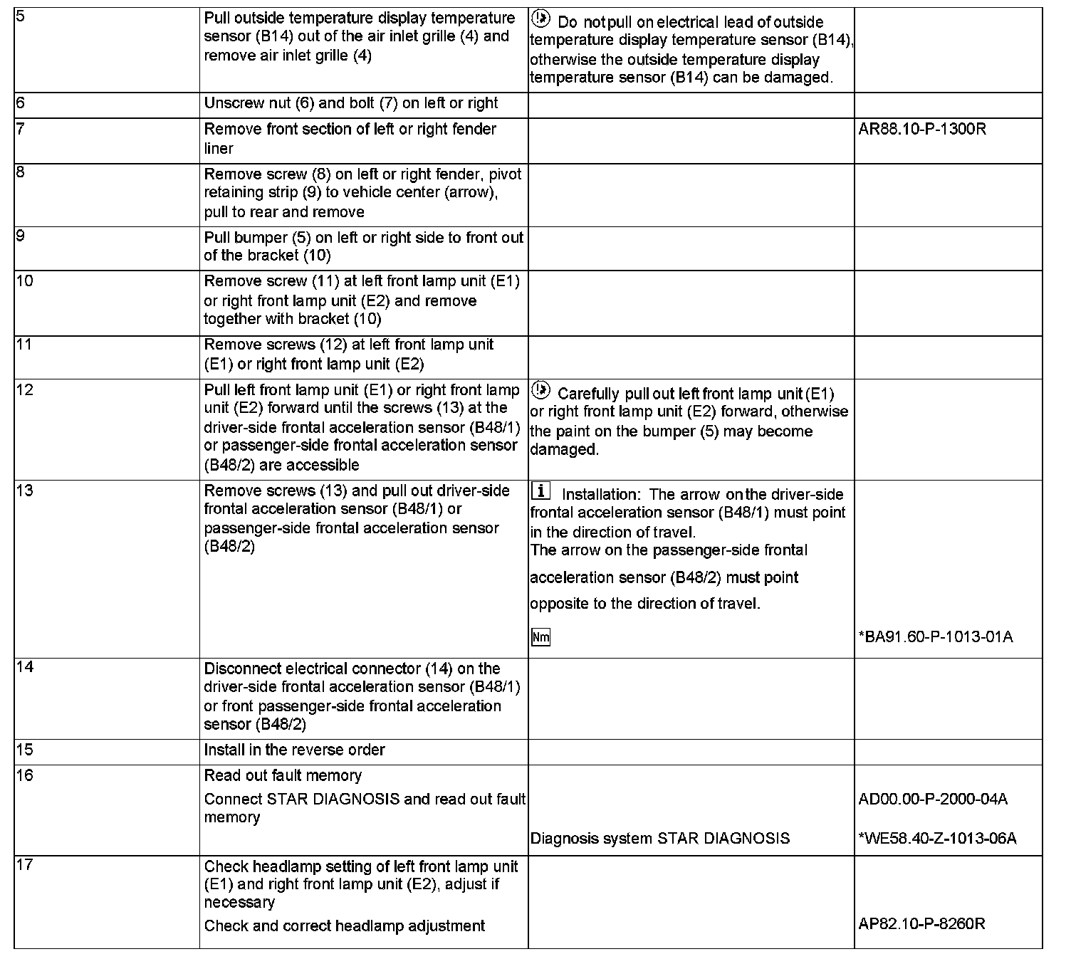 AR91.60-P-0750R Remove/Install Front Acceleration Sensor