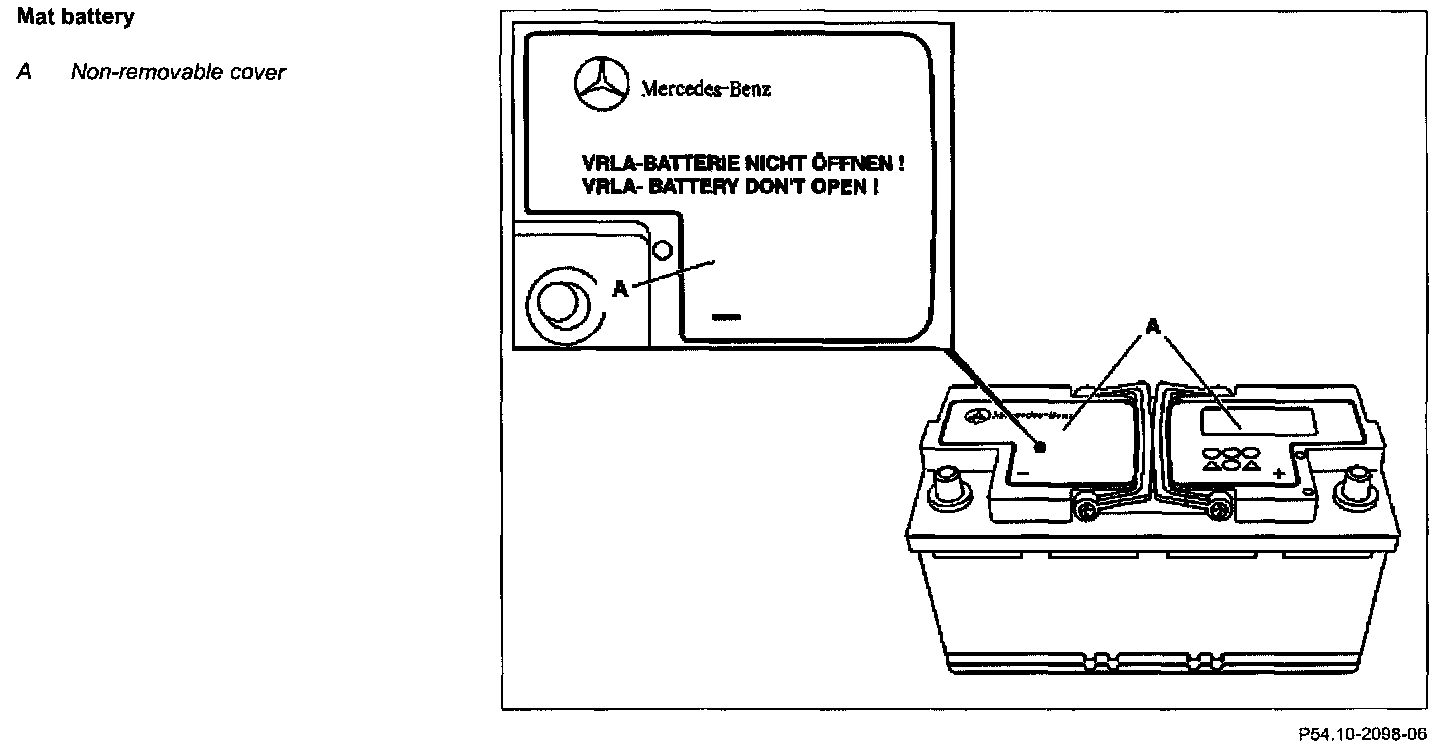 - Identification of mat battery: Black housing, imprint VRLA.