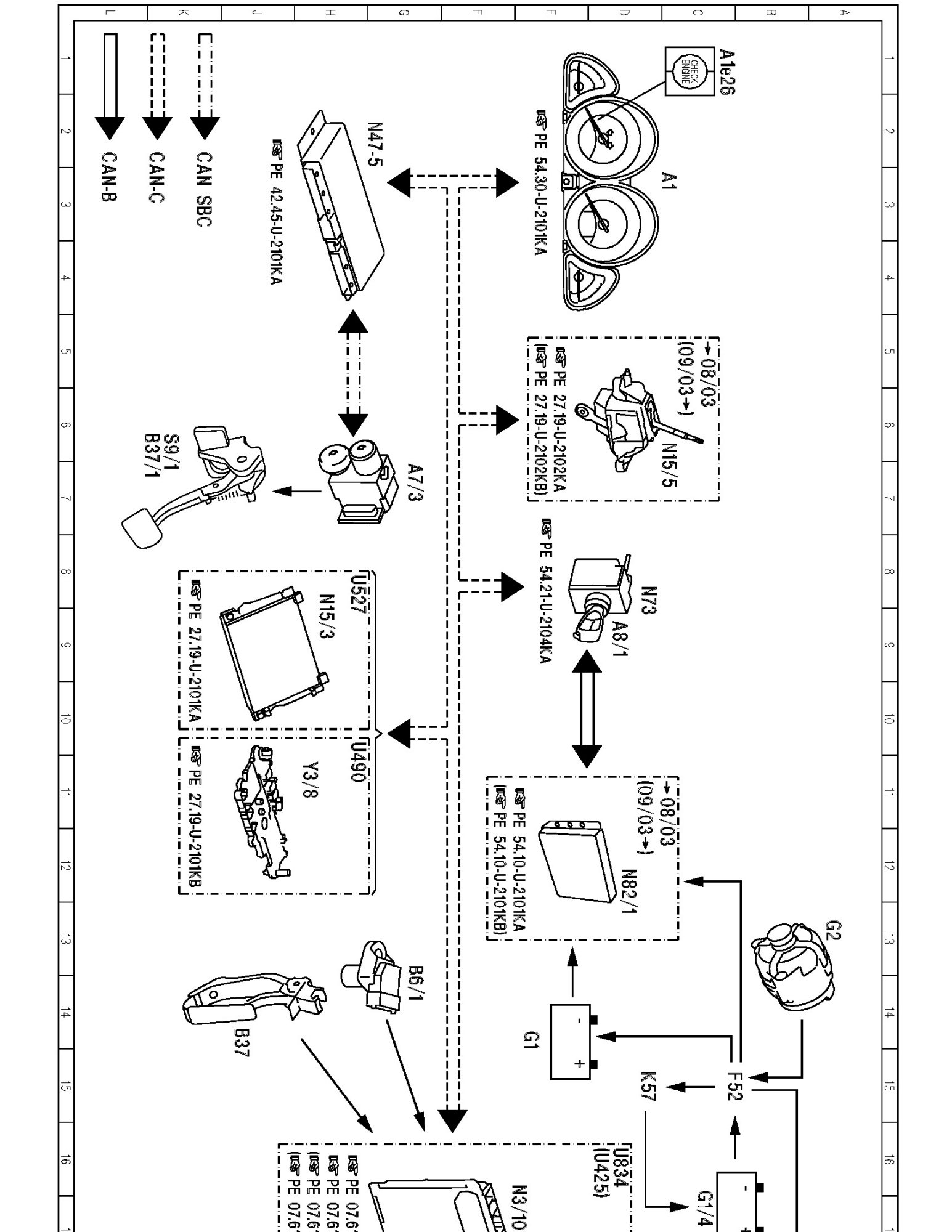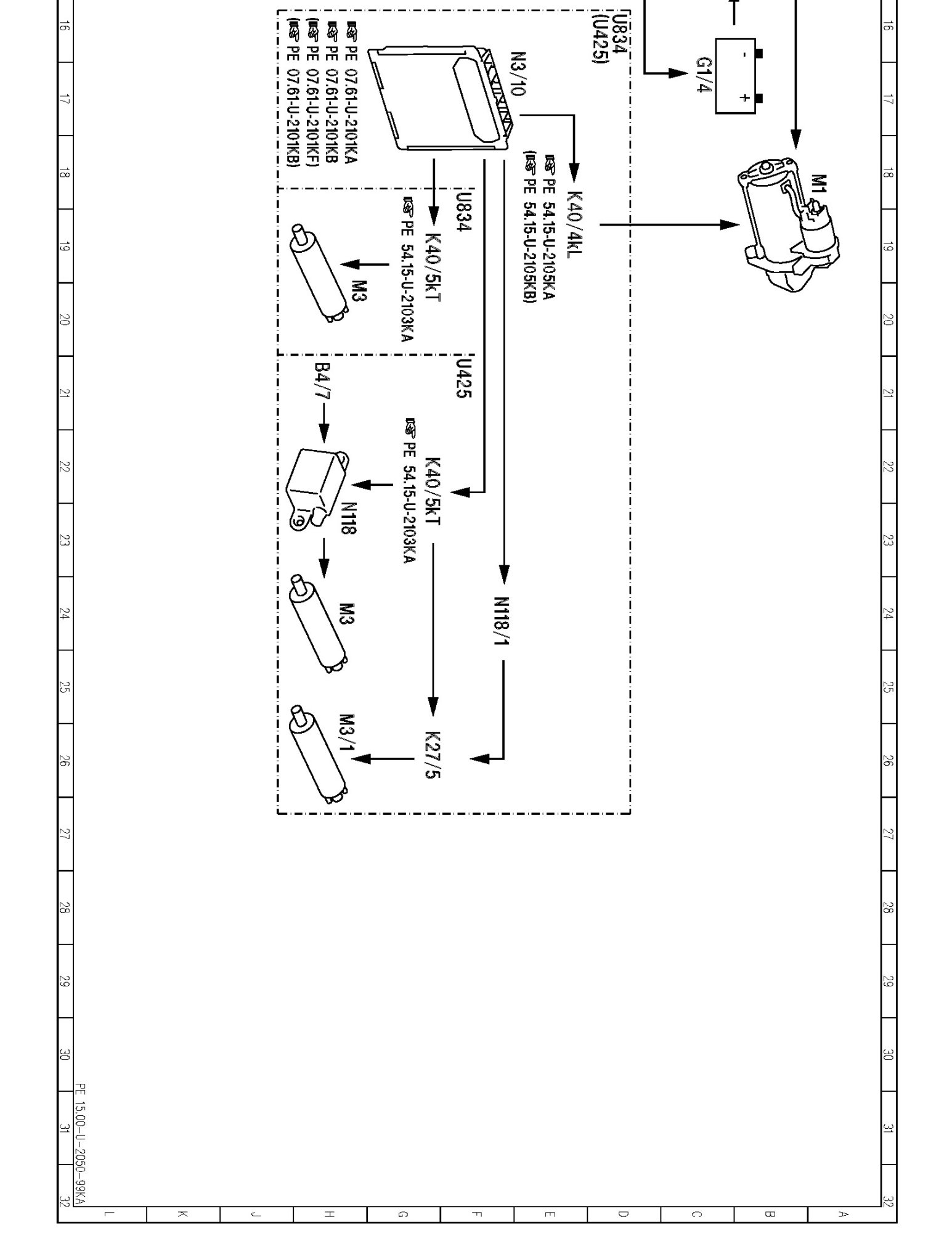 PE15.00-U-2050KA Electrical Function Diagram For Starter, Alternator, Battery