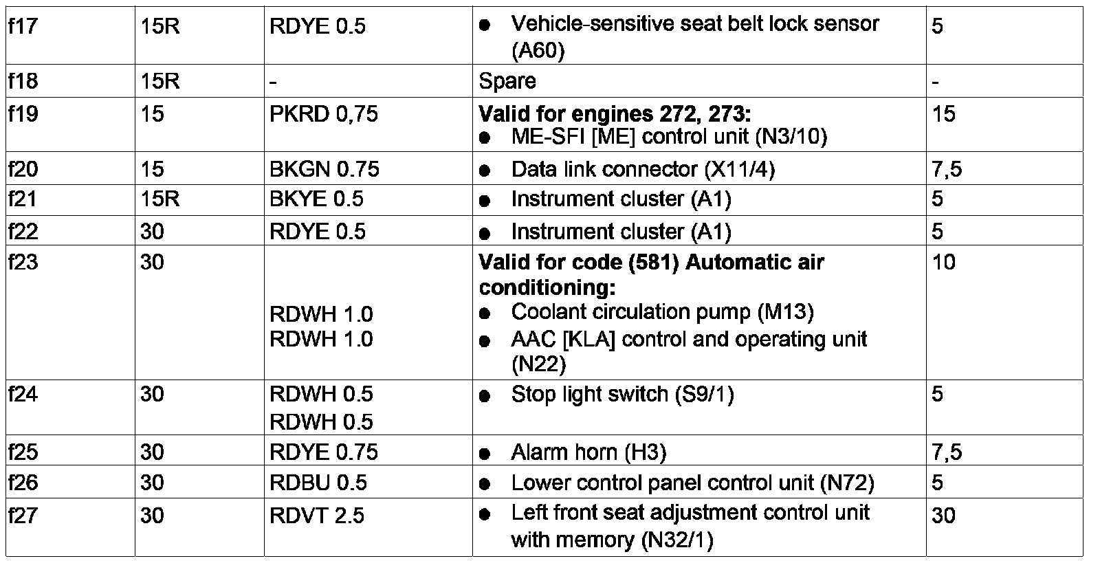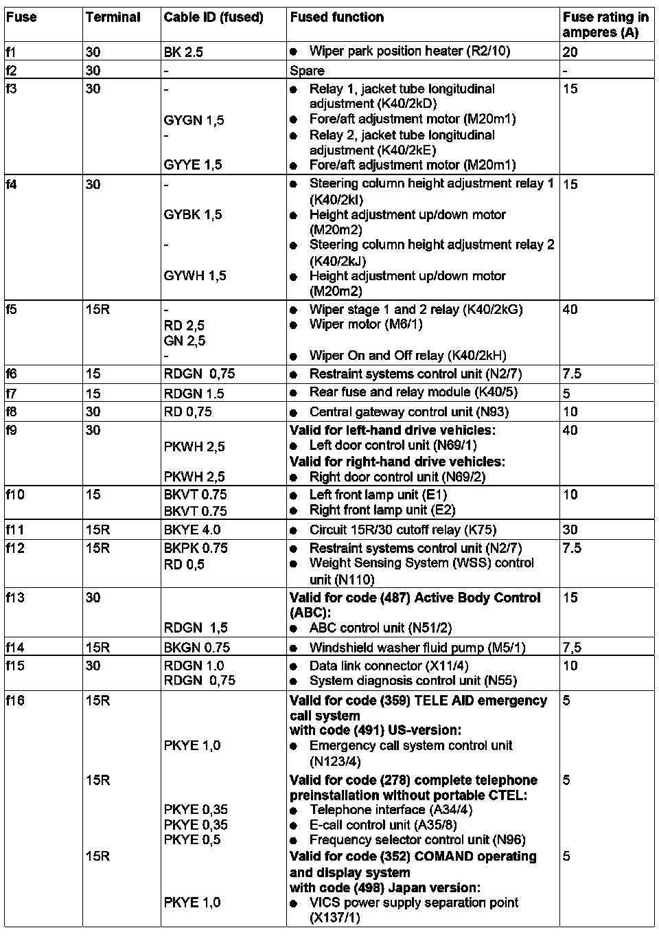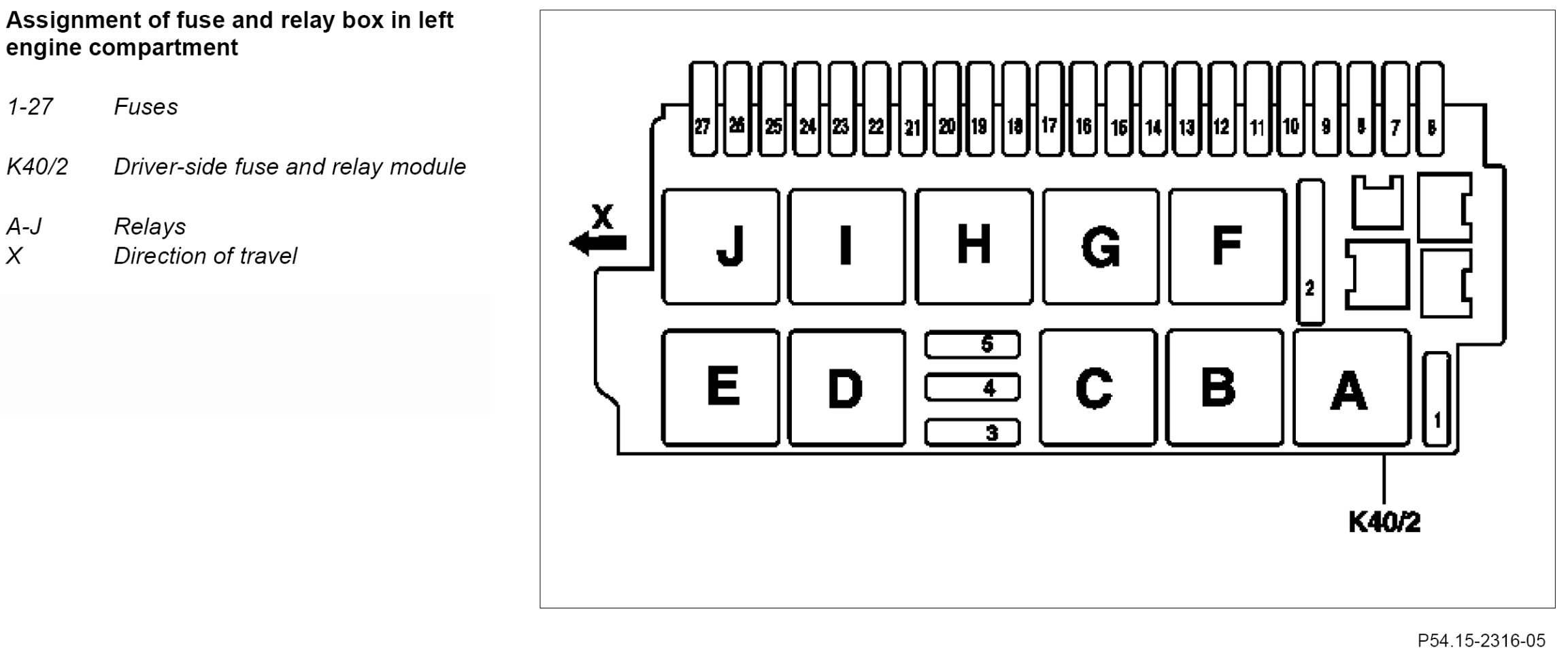 GF54.15-P-1256-03RD Fuse Assignment of Fuse and Relay Box In Left Engine Compartment