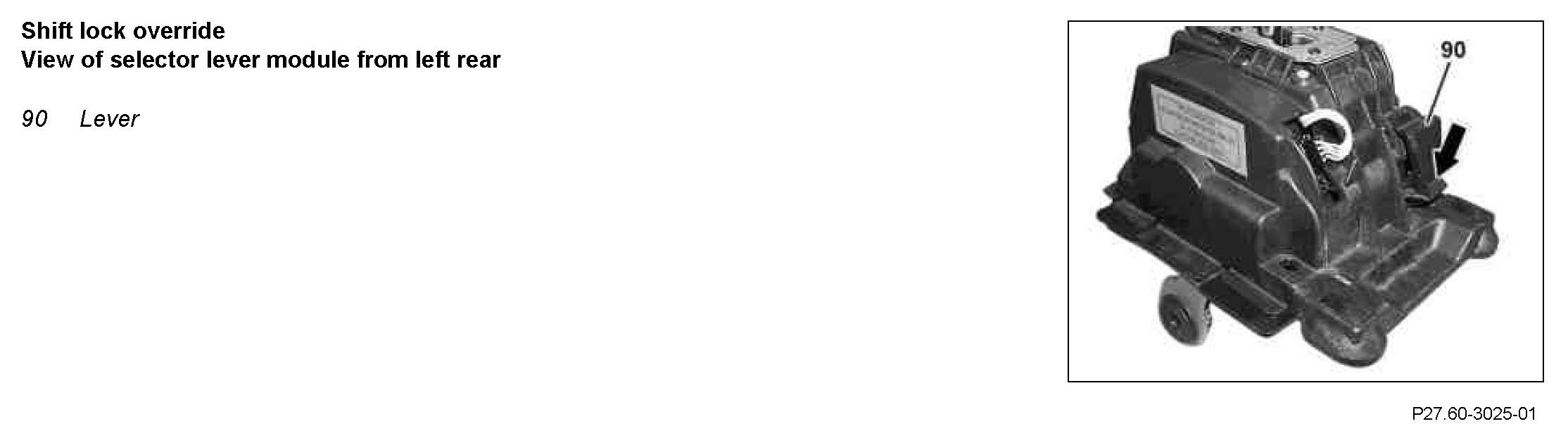 Selector lever position "P" can be released manually (Shift-Lock override) in the event of mechanical or electrical faults.
