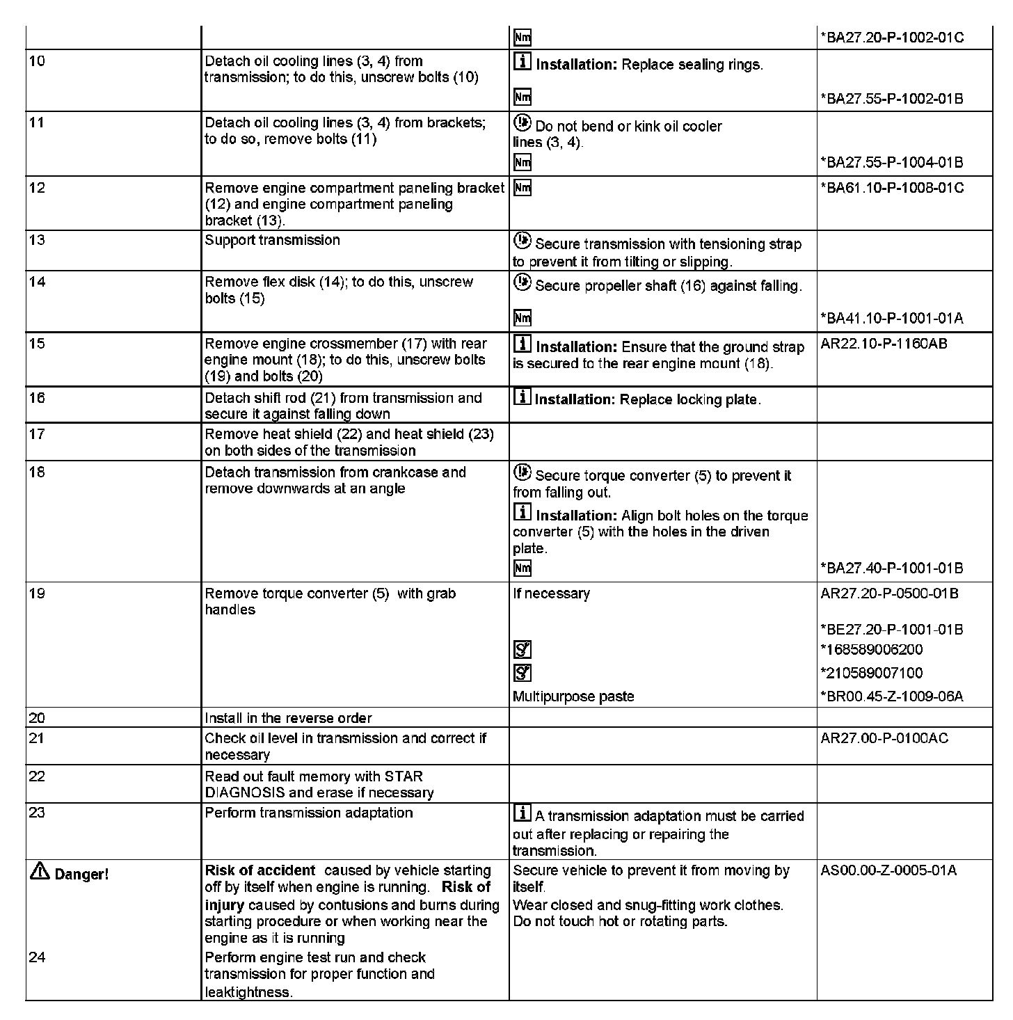 AR27.10-P-0500RC Remove/install transmission with torque converter - Transmission 722.649