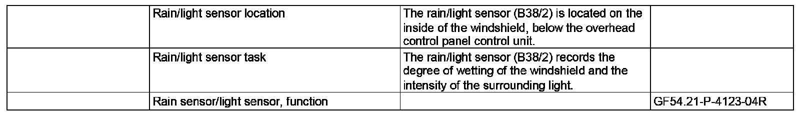 GF54.21-P-4123R Rain/light Sensor Location/task/function