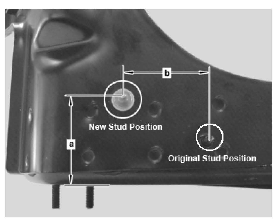 The new support's stud for attaching the ABC suspension wiring harness has moved 46 millimeters to the left of its original position.