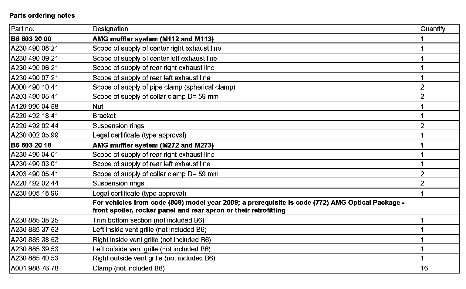 Parts ordering notes: