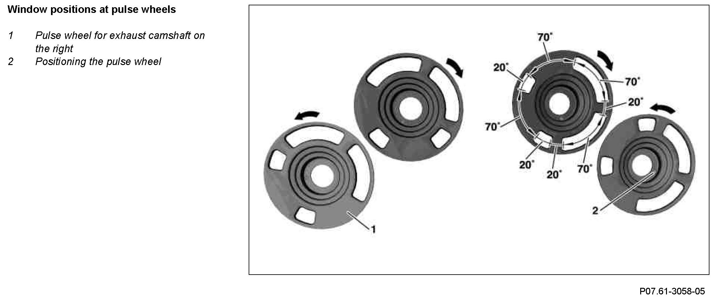 The Hall sensors contactlessly detect the camshaft positions for the following functions over the pulse wheel on the camshafts:
