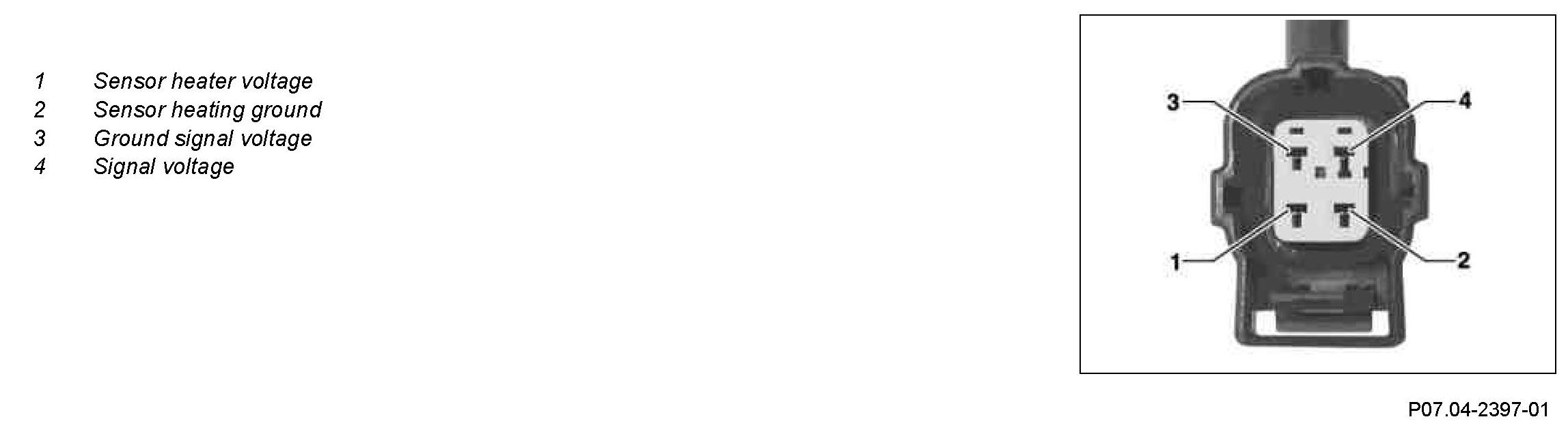 The O2 sensor downstream of CAT is designed as an insulated potential-free and planar (flat) voltage-jump oxygen sensor.