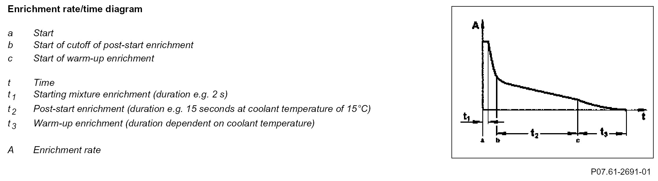 After a cold start the fuel-air mixture is enriched for a short time to ensure that the engine runs smoothly.