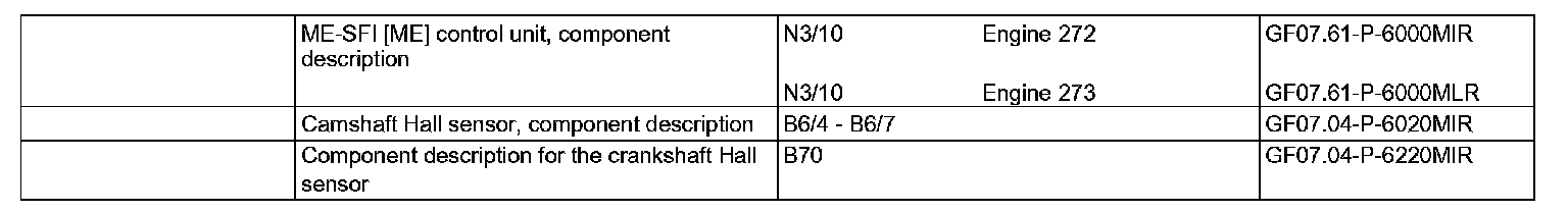 Using the signal from the crankshaft Hall sensor (B70), the ME-SFI control unit (N3/10) generates short-circuit-proof engine speed signal "TNA" (for example, for mechanical testing and diagnosis) and sends it as a direct signal.