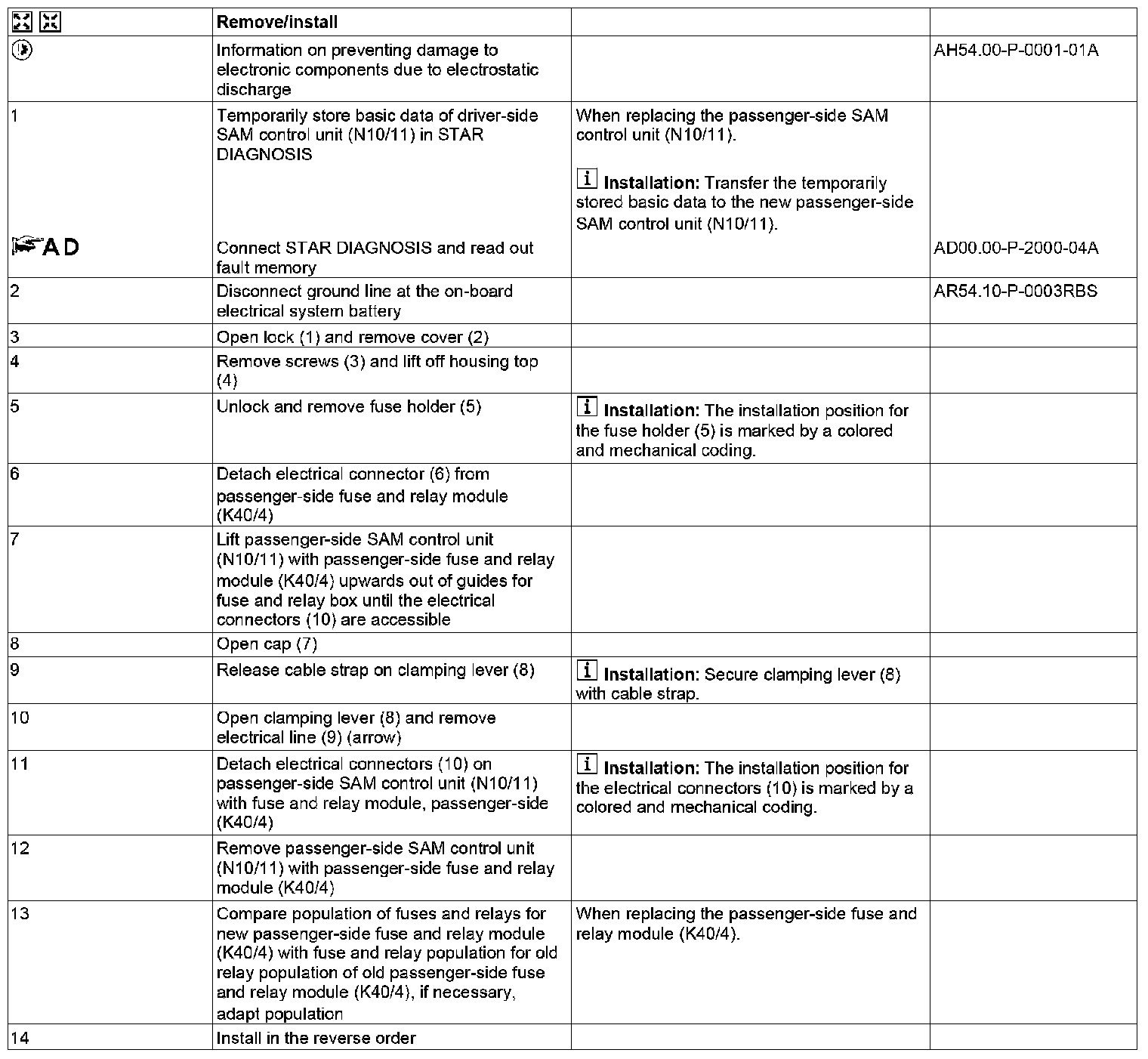 AR54.21-P-1270RBS Remove/Install SAM Control Unit With Fuse and Relay Box In Engine Compartment