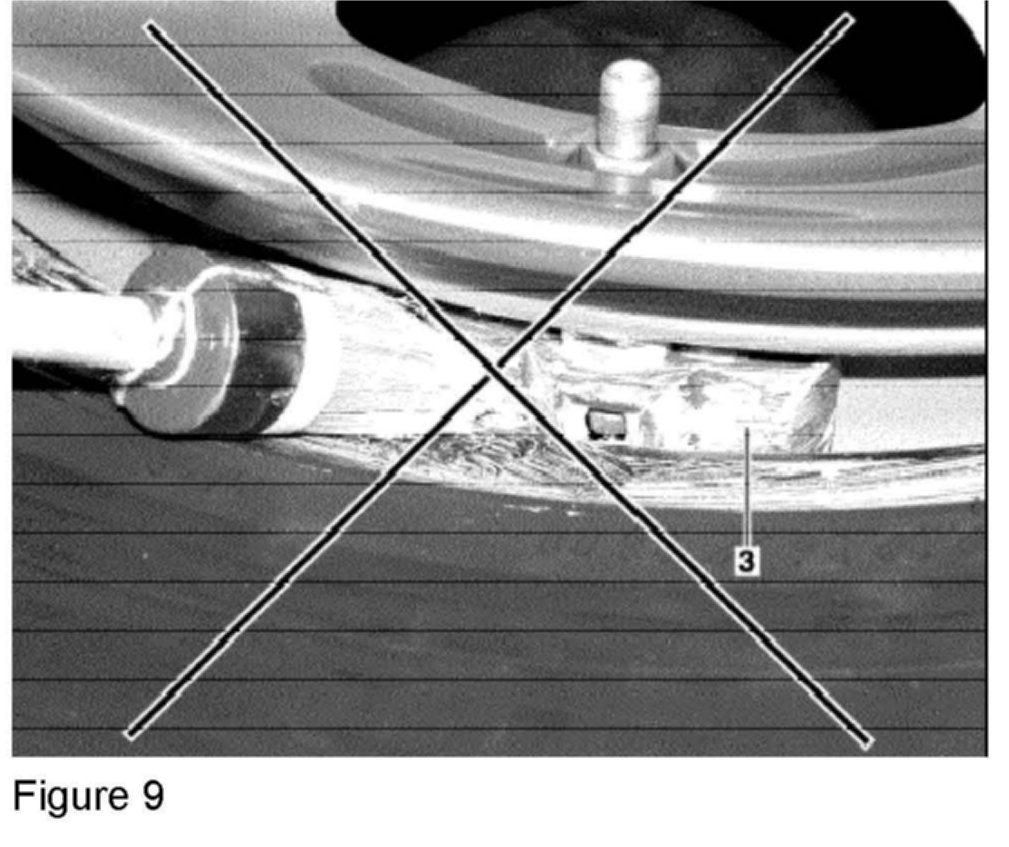 The wheel sensor (3-Figure 9) must not be treated with tire assembly paste or soapy water.