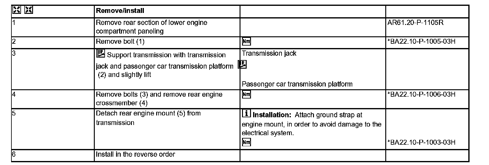 AR22.10-P-1180RX Remove/install engine mount or engine crossmember at the rear