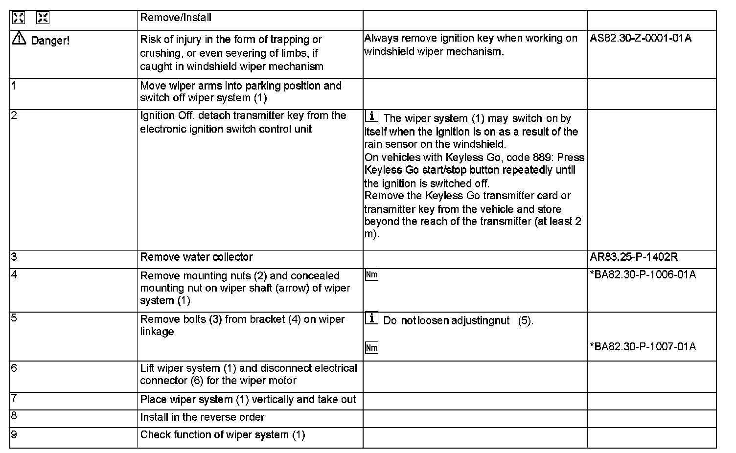 AR82.30-P-6400R Remove/Install Wiper System