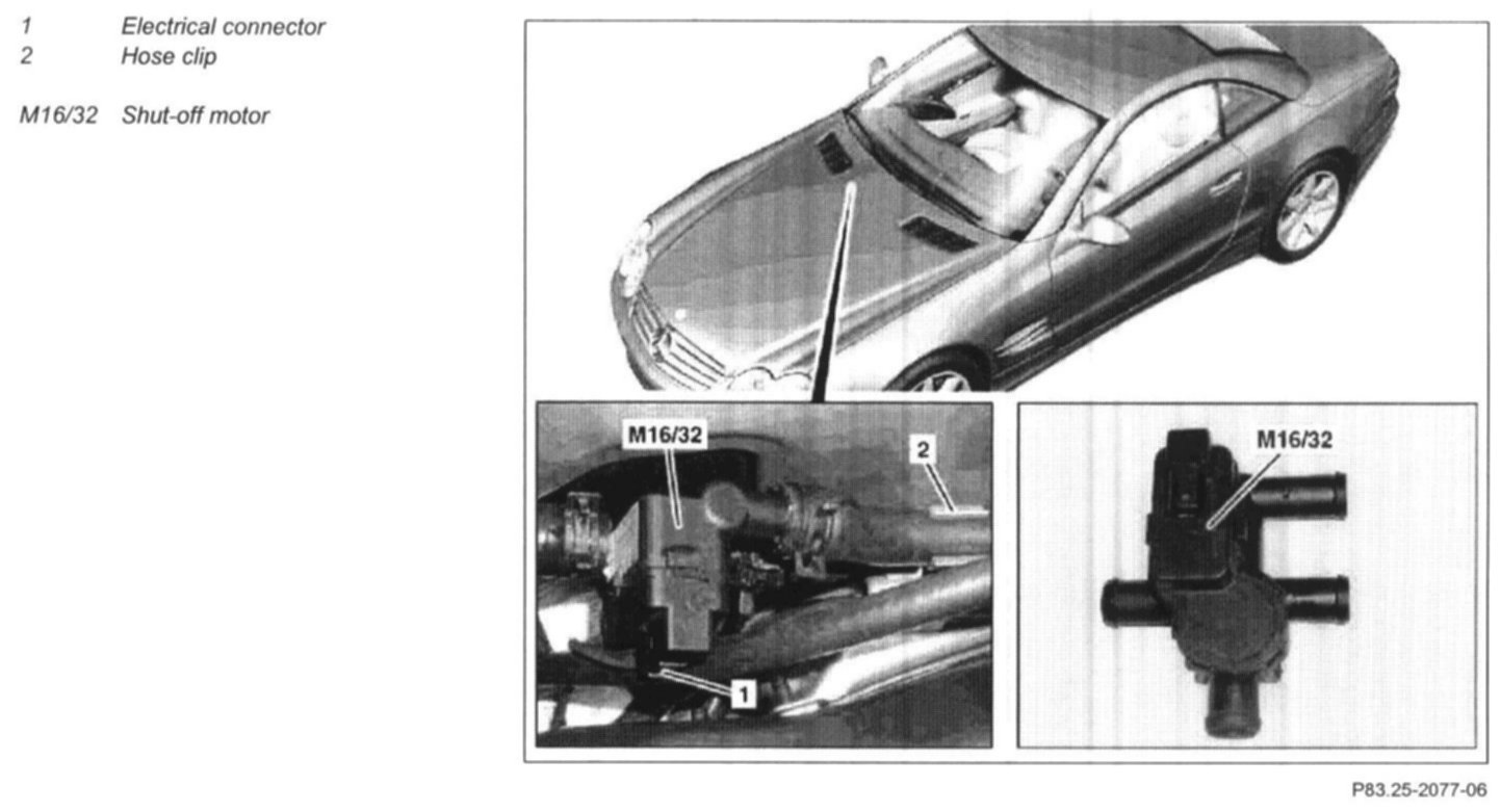 7 Detach coolant hoses (heater) on shut-off motor (M16/32)
