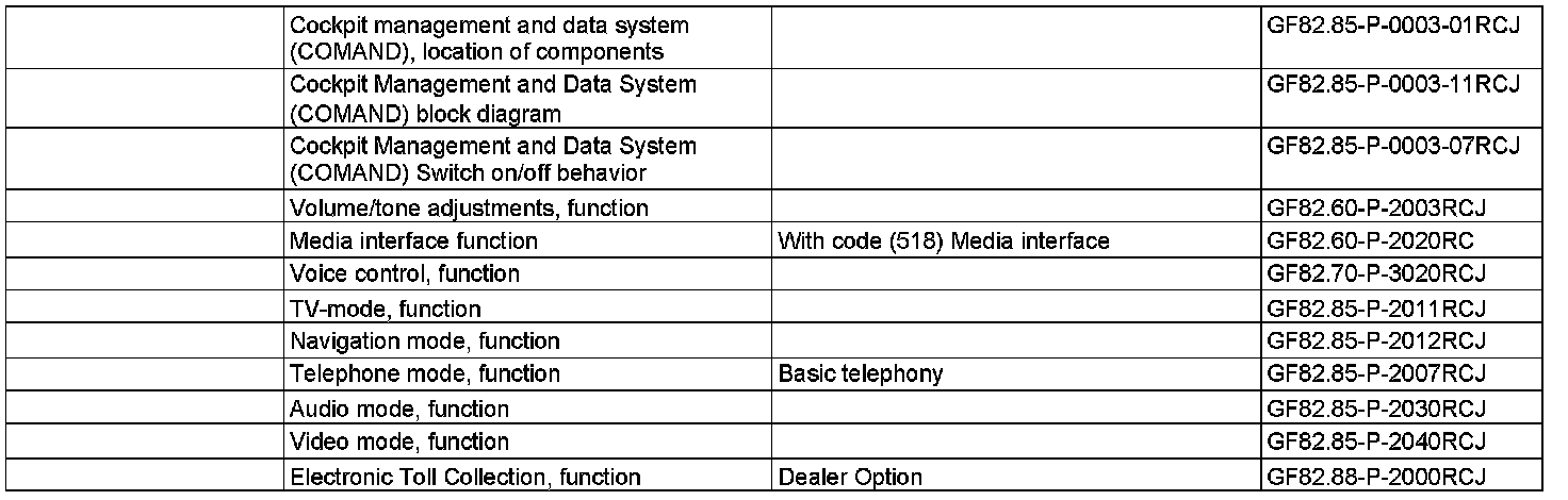 The Cockpit Management and Data System (COMAND) encompasses the entertainment, communication and information system in the vehicle. The COMAND operating, display and controller unit includes the following subfunctions which are described in separate documents: