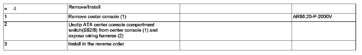 AR80.50-P-0015V Remove/install ATA Center Console Compartment Switch