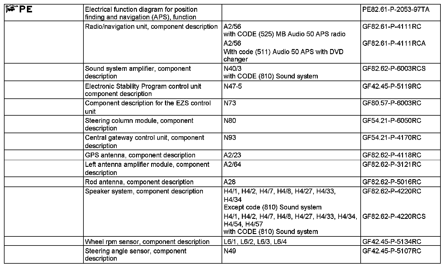 In vehicles without code (810) Sound system, the voice output is processed and amplified within the radio and navigation unit. The audio signal is sent to the following speakers over discrete lines: