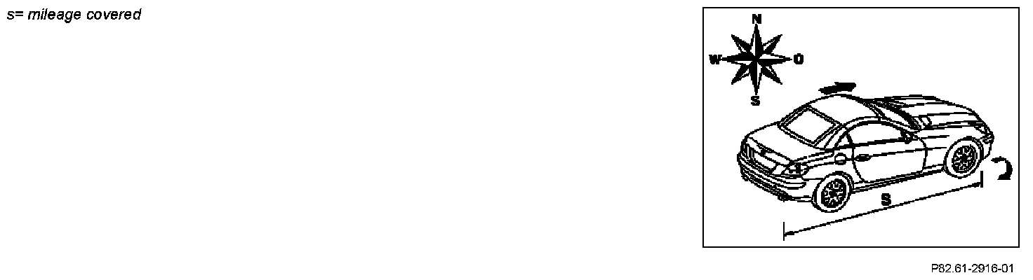 From the data of the yaw rate sensor and the sequence of the locations calculated with the global positioning system (GPS), the navigation processor (N41/1) calculates the orientation (compass direction) of the vehicle.