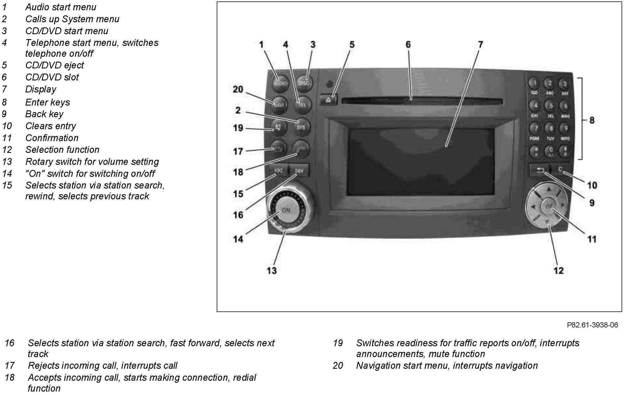 The following function areas are included in the radio and navigation unit: