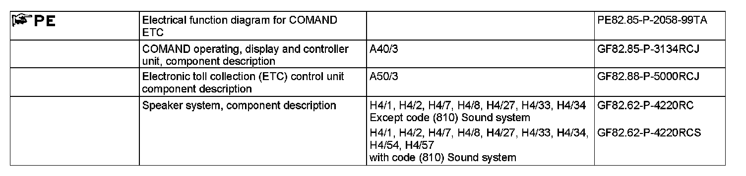 To transmit and receive the data, the Electronic Toll Collection (ETC) antenna (A2/94) and the Electronic Toll Collection control unit (A50/3) are installed in the vehicle. The ETC control unit communicates via the ETC antenna with the toll cashier's section. For automatic payment, a special ETC card must be inserted into the control unit. All information concerning the user and the fees that have already been paid are stored on this card. On the vehicle, the control unit is connected to the COMAND controller unit via an RS-232C interface. The ETC also has voice output and visual output (pop-ups).