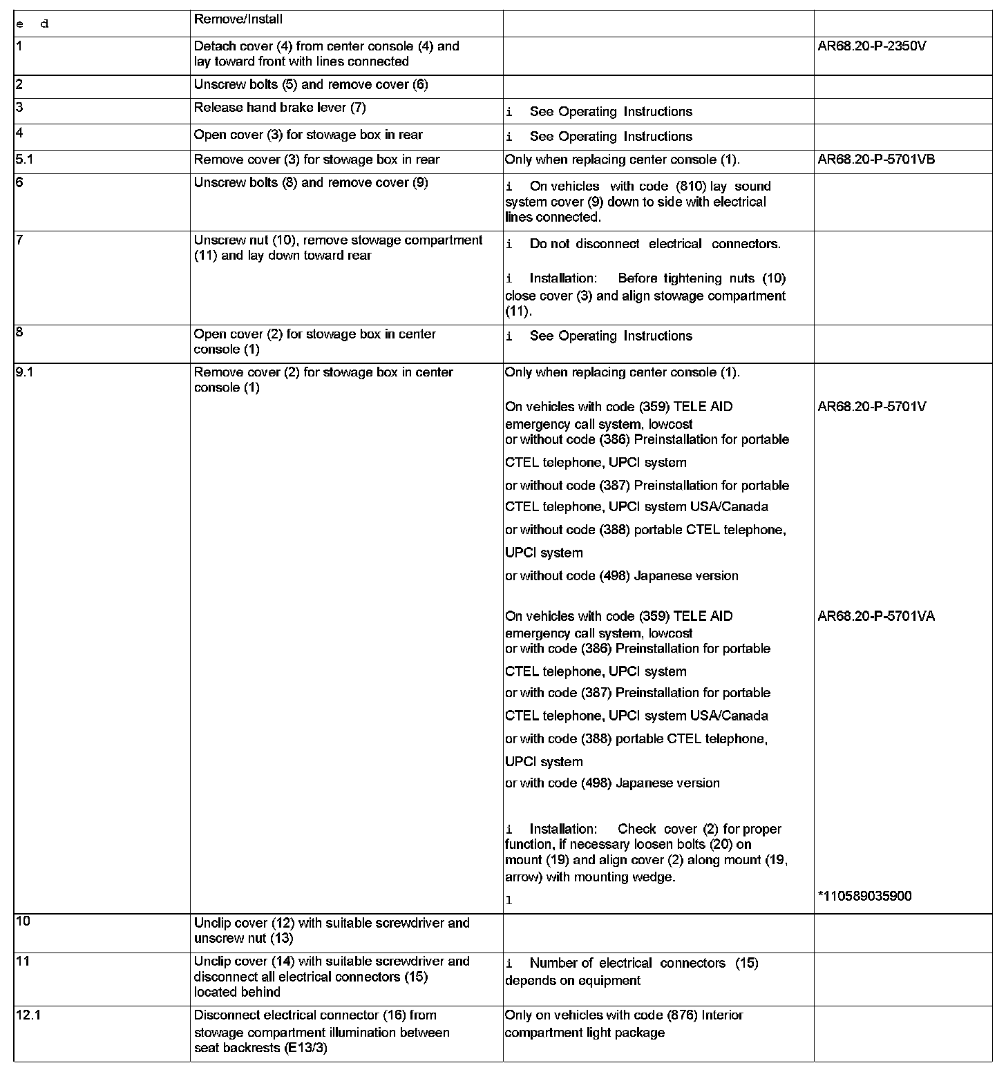 AR68.20-P-2000V Remove/Install Center Console