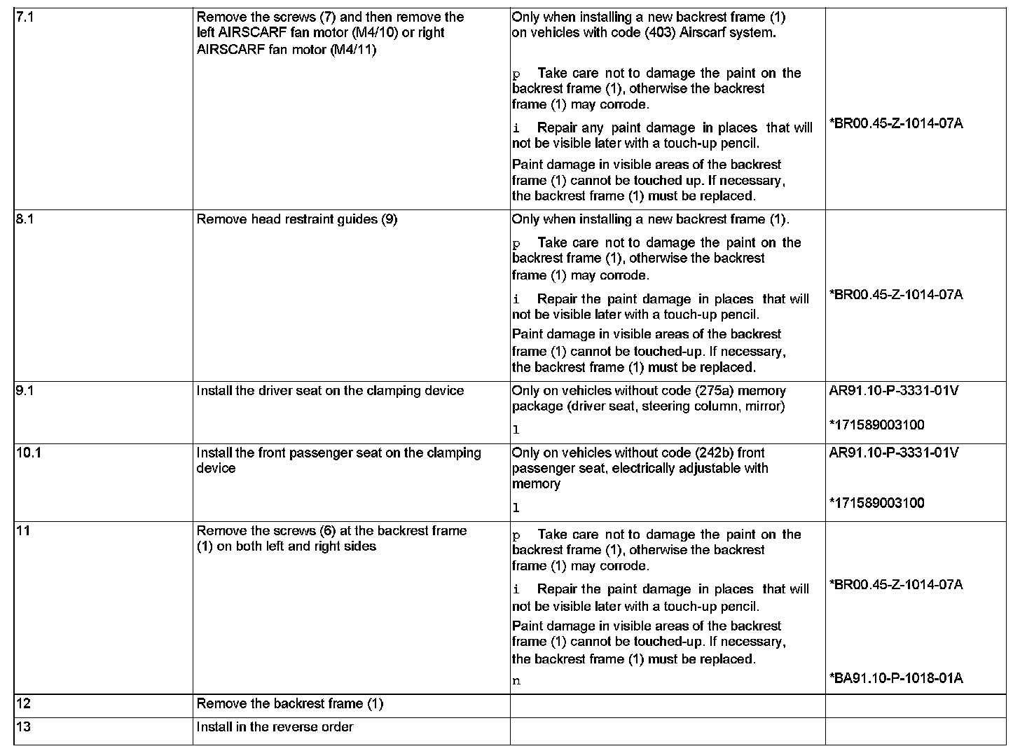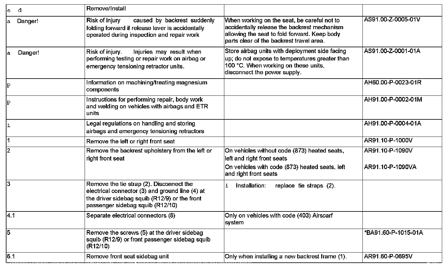 AR91.10-P-3331VA Remove/Install Front Seat Backrest Frame