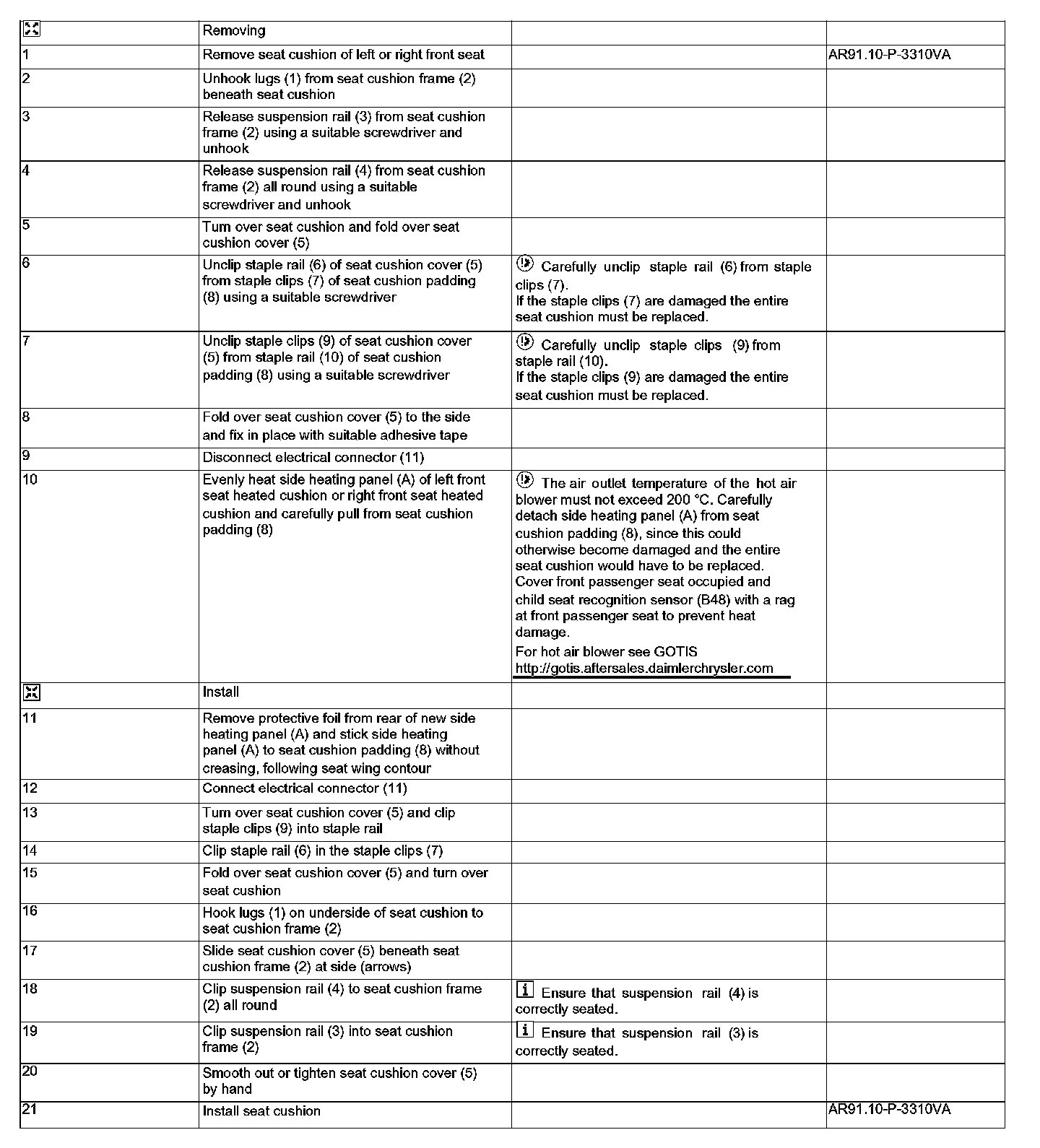 AR91.30-P-0007V Replace Heated Cushion On Lateral Enthusiast Seat Wings On Front Seat