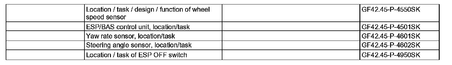 Using this information the drive torque can be varied so that no slip occurs at the drive wheels. This improves the lateral stability of the vehicle. This process takes place without informing the driver (ESP warning lamp (A1e41).