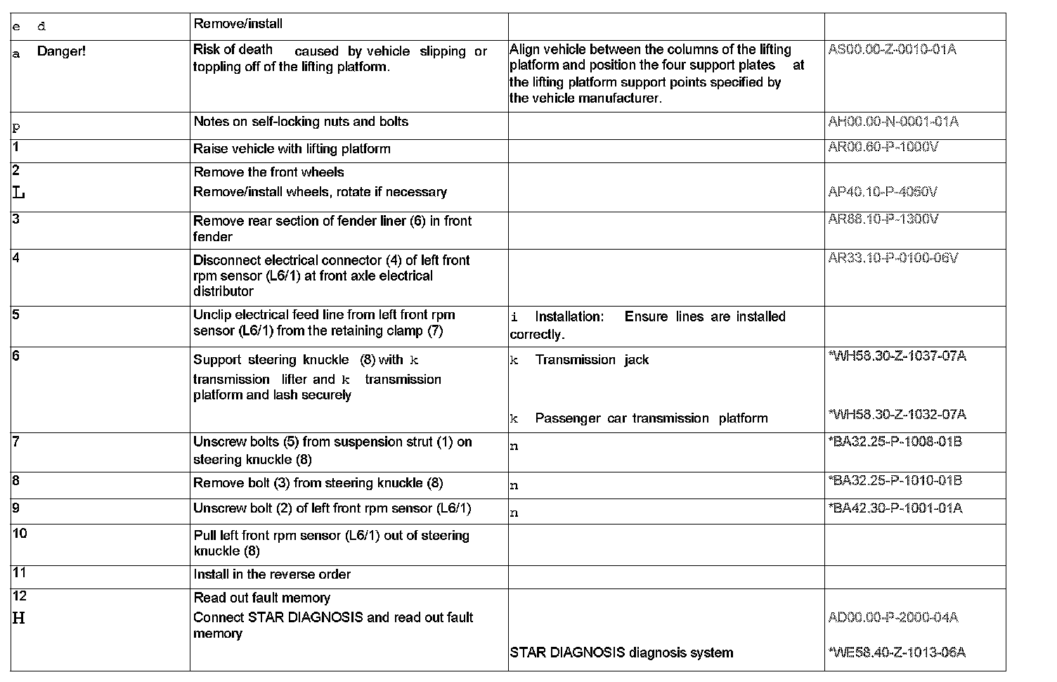 AR42.30-P-0712V Remove/install left front or right rpm sensorComponent Identification: