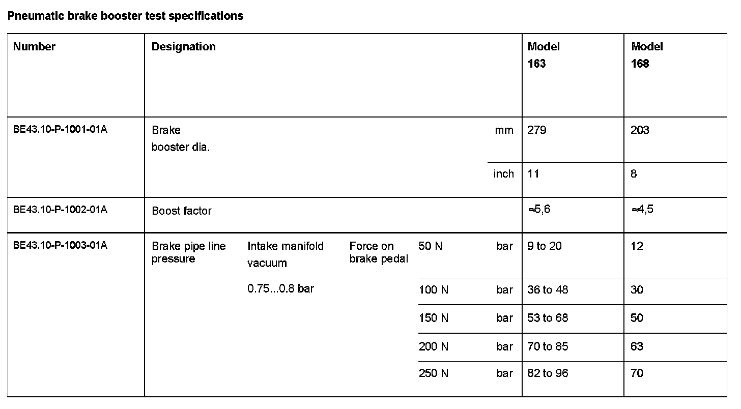BE43.10-P-1000-01A Pneumatic brake booster test specifications