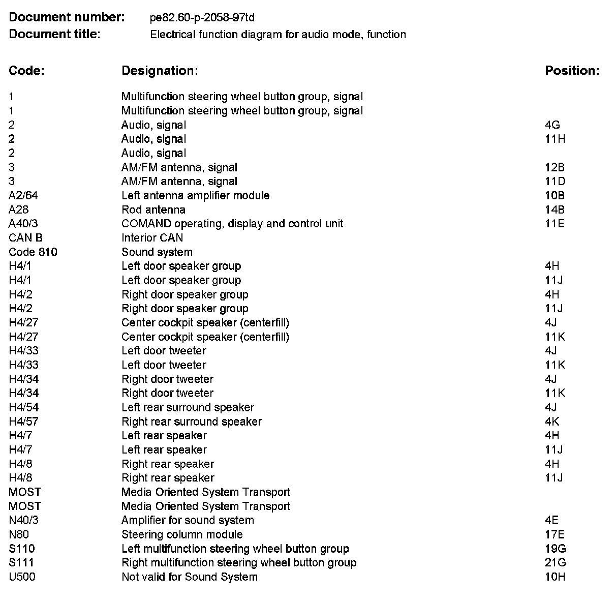 PE82.60-P-2058TD Electrical Function Diagram For Audio Mode, Function