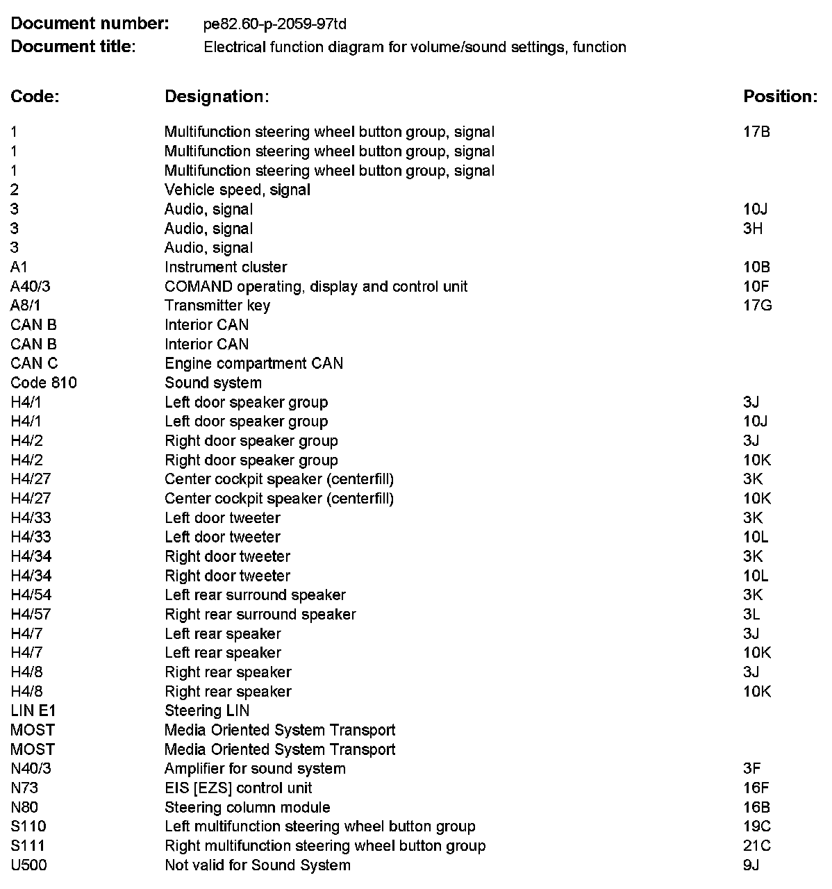 PE82.60-P-2059TD Electrical Function Diagram For Volume/Sound Settings, Function