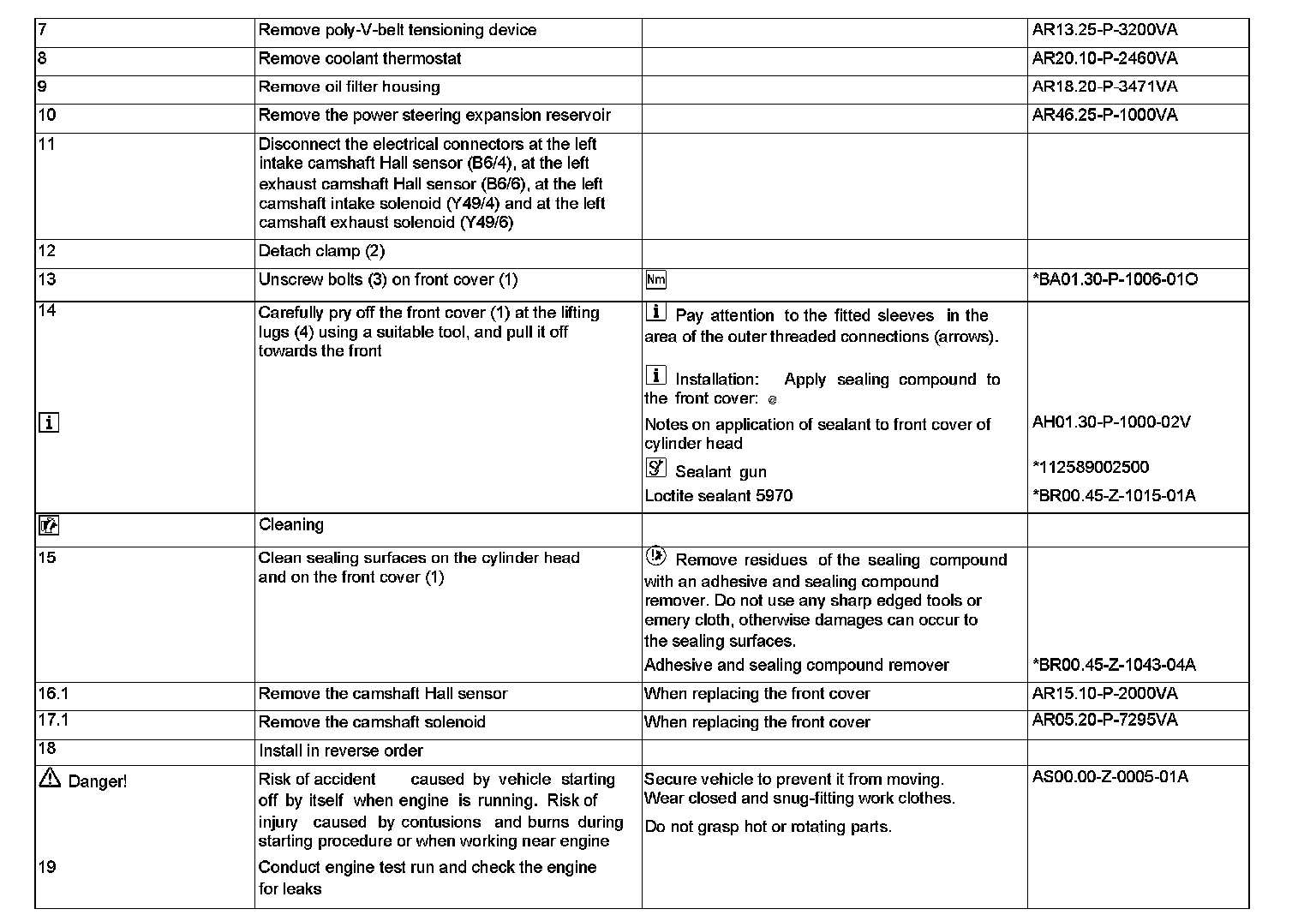AR01.30-P-5700VB Removing/installing front cover on cylinder head