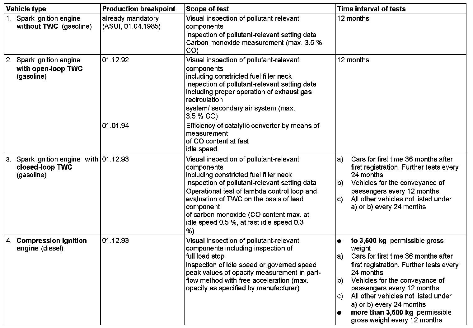 In the Federal Republic of Germany an inspection of exhaust emissions has been mandatory since 01.04.1985.The vehicles which are subject to this exhaust emissions test are summarized in the overview of the test procedure.