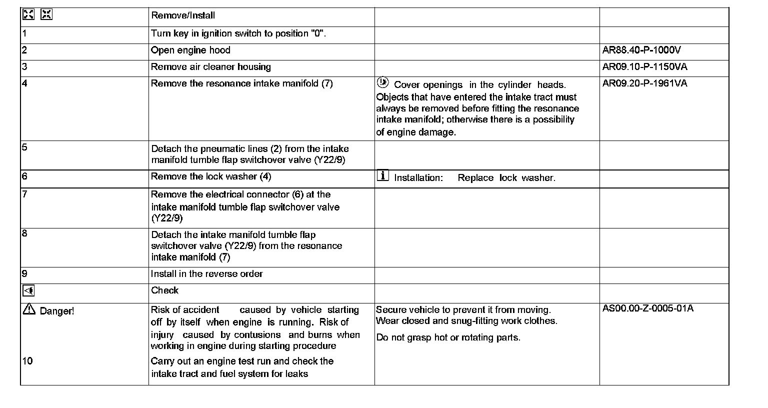 AR09.20-P-1994V Remove/Install Tumble Flap Switchover Valve At the Intake Manifold