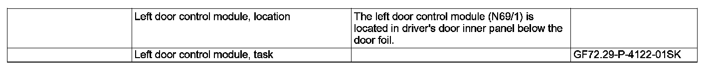 GF72.29-P-4122SK Left Door Control Unit, Location/Task