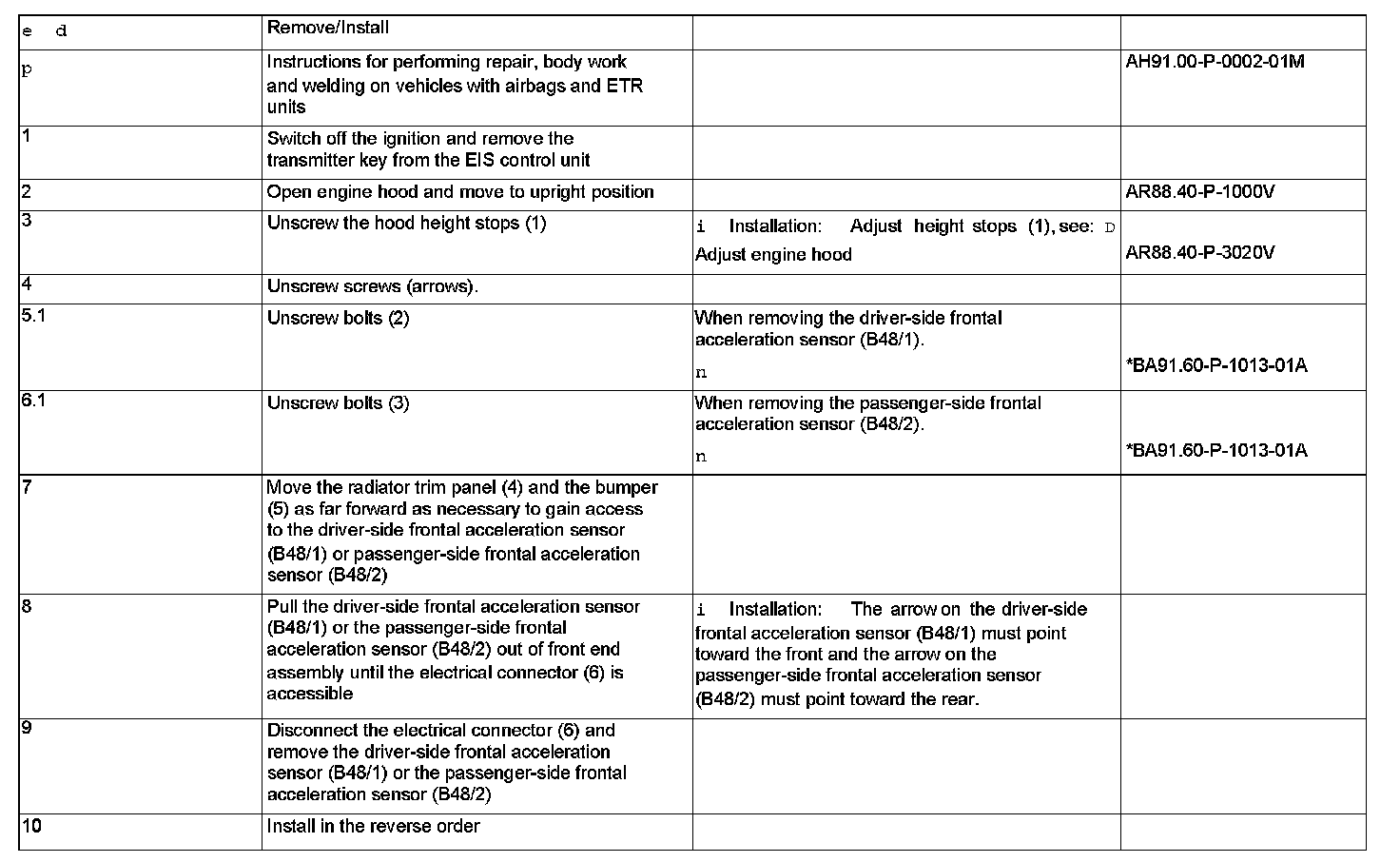 AR91.60-P-0750V Remove/Install Frontal Acceleration Sensor