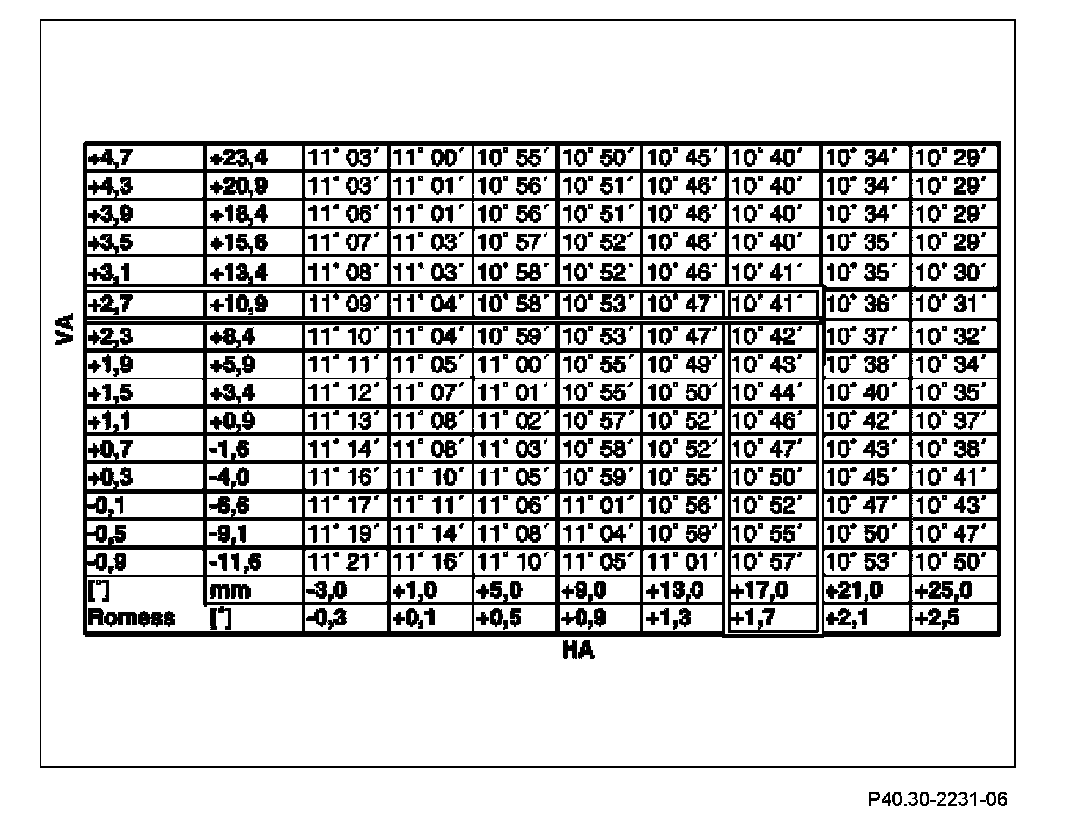 The ride-height readings are displayed by the electronic clinometer in decimal degrees [°].