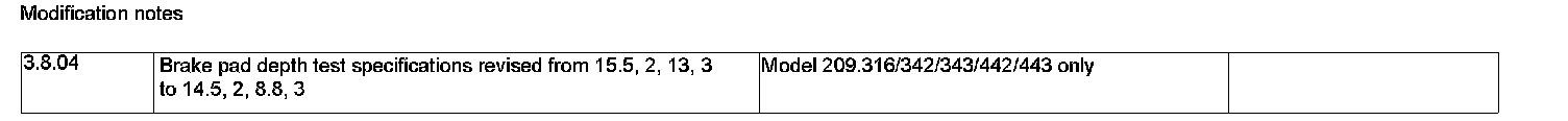 BE42.10-P-1000-07C Test Values For Brake Pad In Rear Fixed CaliperModification Notes: