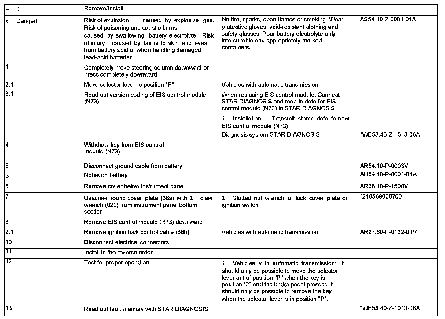 AR80.57-P-1000V Remove/install Electronic Ignition / Starter Switch Control Module