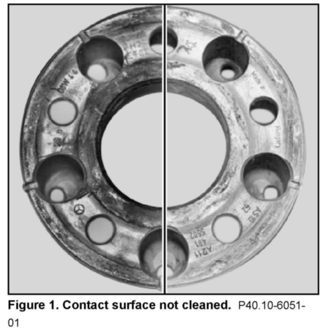 Incorrect installation of and/or incorrect contact surface cleaning methods of bolted wheel connections can lead to the loosening of the wheel-and-tire assembly, which can result in injury to people, property, or the environment.