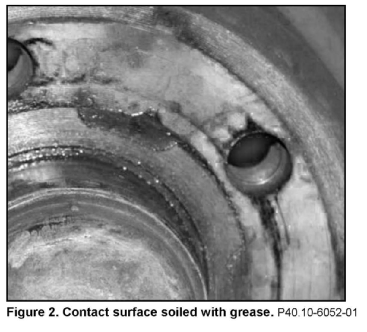 3. Clean any contaminated threads. Remove all corrosion and dirt from corroded threads using tap. There must be no damaged or missing threads. Any dirt left in the thread prevents reaching specific torque value. The cleaned contact surface should look like Figure 4.