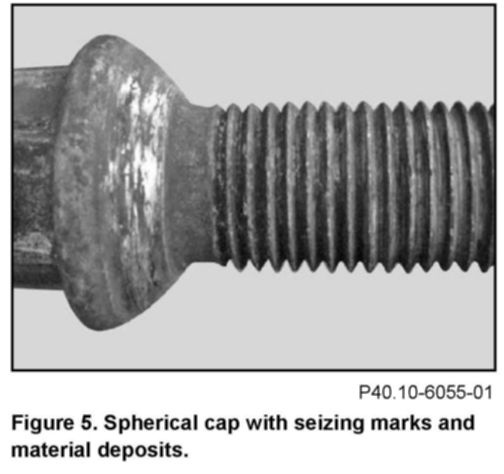 3. Check radius seats of wheel bolt for signs of damage, scoring marks and material deposits. Replace any wheel bolts that are damaged, scored, or have material deposits. Any remaining sizing marks or material deposits will prevent reaching specific torque value.