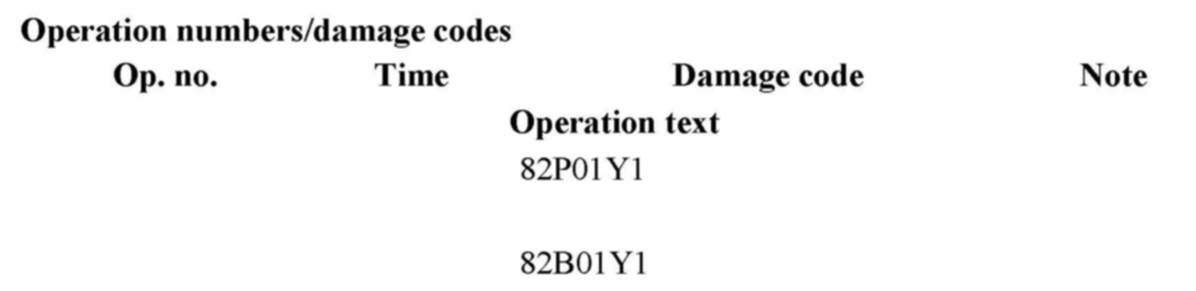 Operation numbers/damage codes