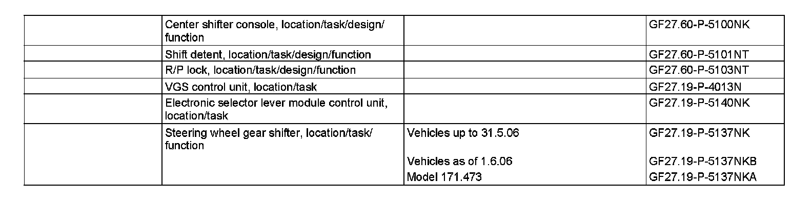 In the manual shift program "M" all the forward gears can be selected using the selector lever or the left steering wheel gear shifter (S110/2) and right steering wheel gear shifter (S111/2) (vehicles up to 31.5.06 with code (428) Steering wheel shift buttons) or the steering wheel gear shifter MINUS (S110/1) and steering wheel gear shifter PLUS (S111/1) (model 171.473 and vehicles as of 1.6.06 with code (428) Steering wheel shift buttons).
