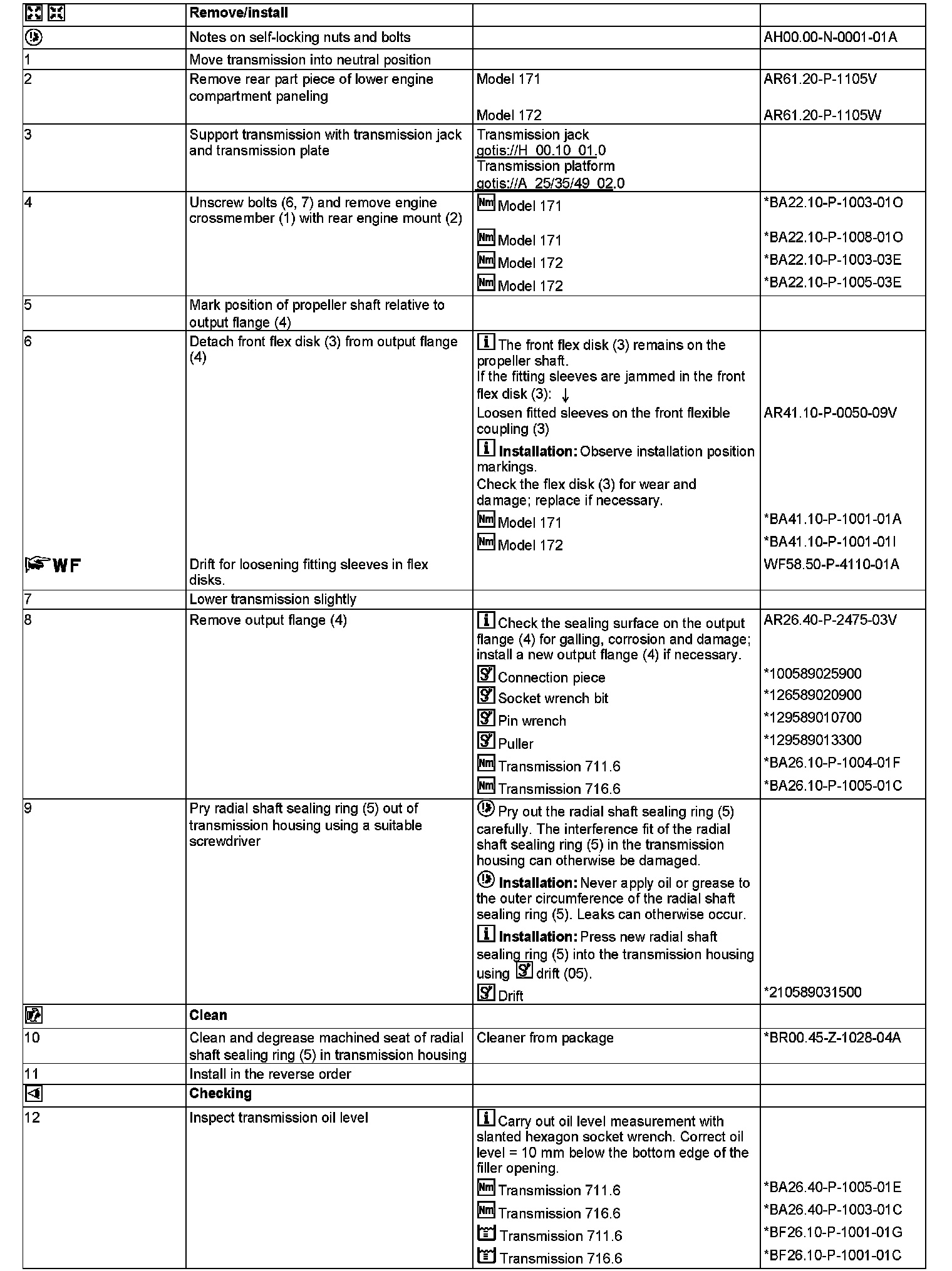 TRANSMISSION 711.6, 716.6 in MODEL 172 with ENGINE 271
